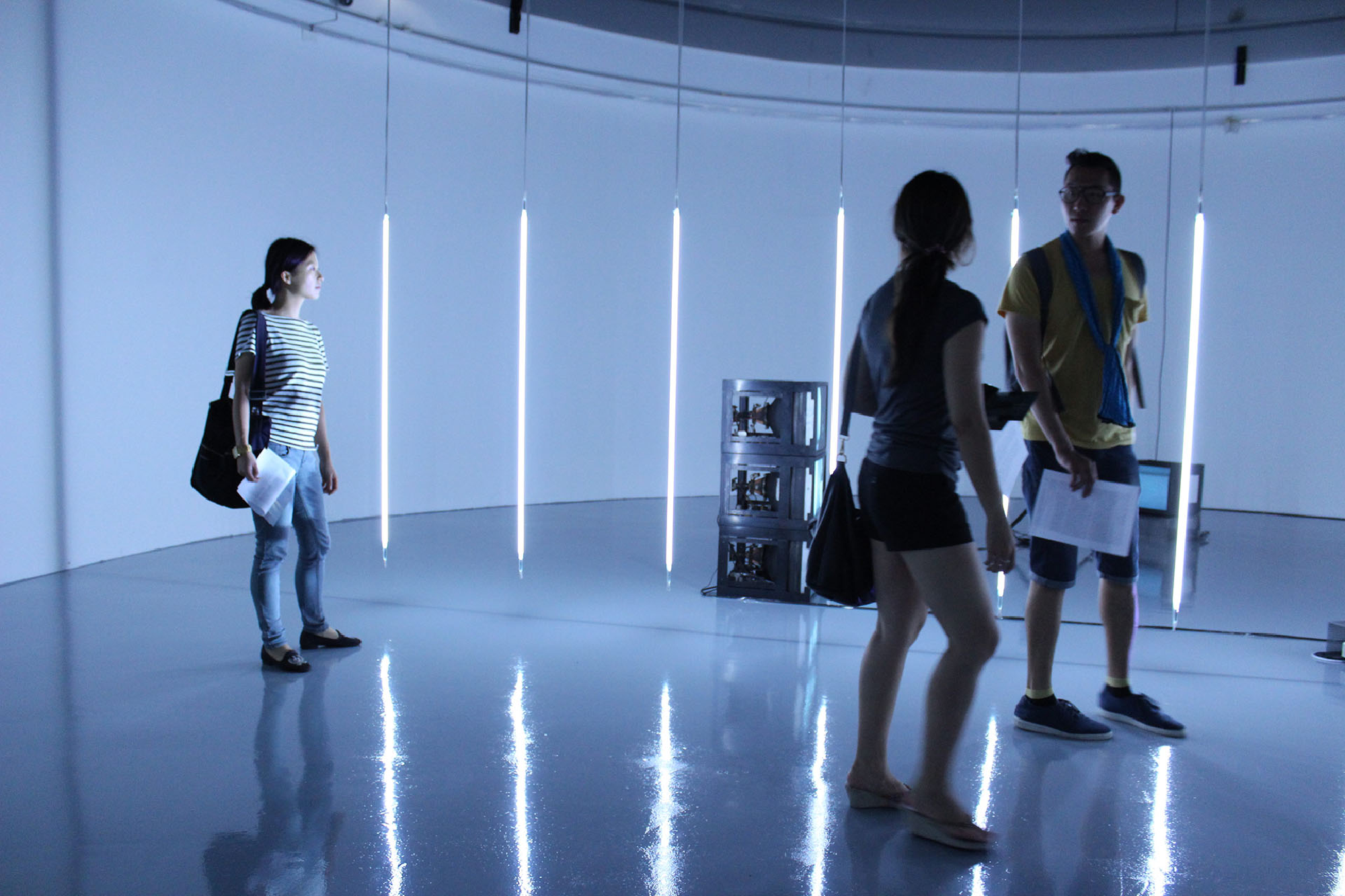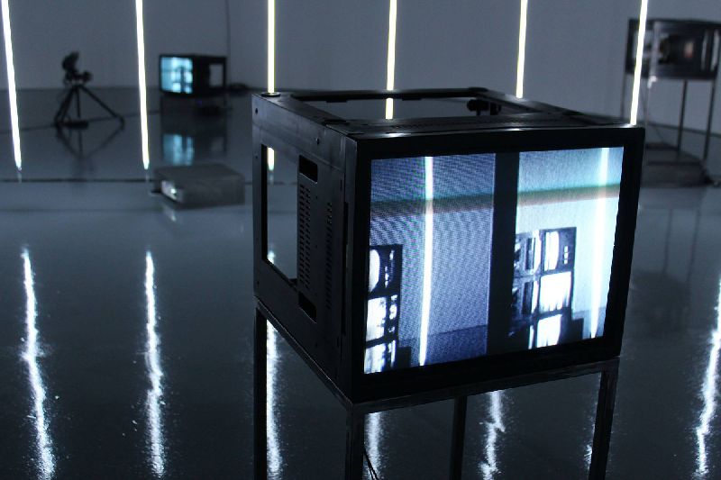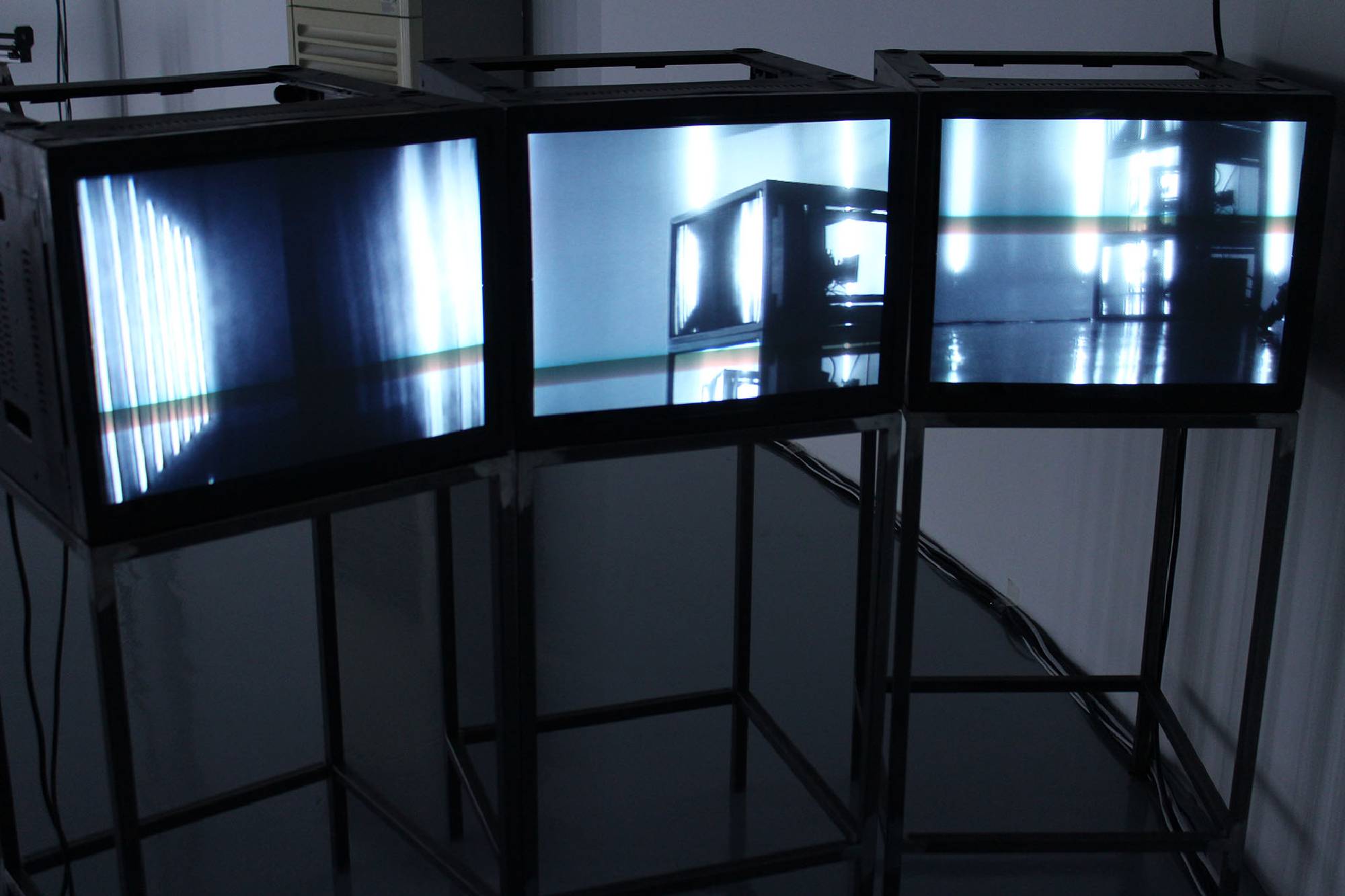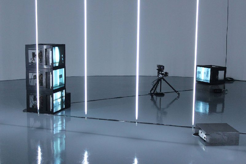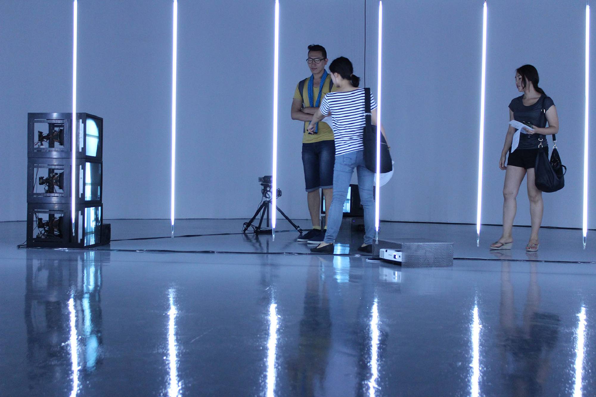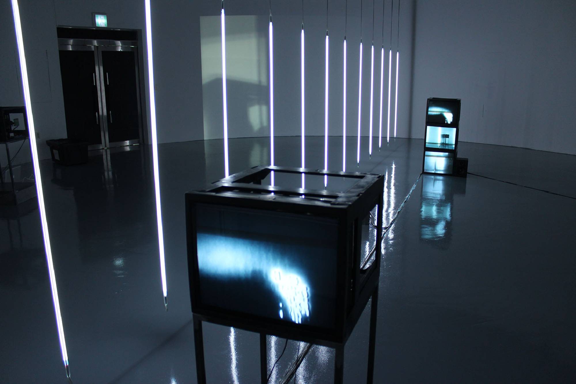 As SeMA Artist in Residence and 2011/12 Fulbright Scholar, Rice spent one year studying the speeds and scale of urban transformation in South Korea. Focusing on a number of sites in Seoul, this research contributed to a diverse body of work, including photography, sculpture, video, sound, and installation, that explores how memory is constructed, contained, and altered in space. Arcade Zero specifically brings together materials observed, collected, and fabricated in Sewoon Market, a soon-to-be-demolished series of arcade blocks in downtown Seoul. Combining neon lighting, live sound, and delayed video from an array of motion controlled closed-circuit cameras, the system reflects an environment in constant flux; alternately emerging and receding, yet ever out of phase with the surrounding space.