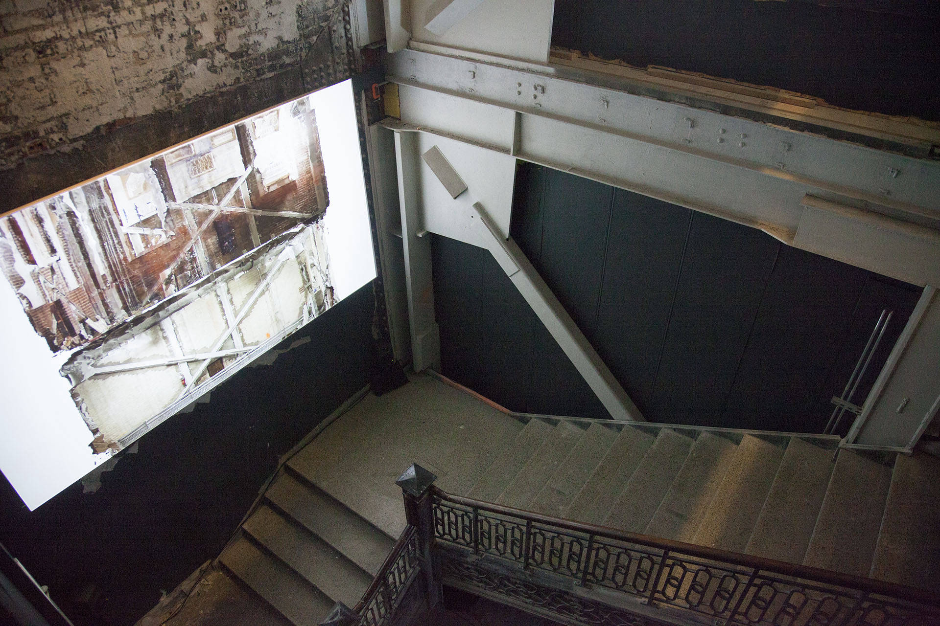 Created for Out of Sight, an independent satellite exhibition for the 2015 Seattle Art Fair, Com’era, Dov’era was installed in a disused stairwell at the base of the station’s clock tower, a structure modeled after the Campanile di San Marco in Venice.