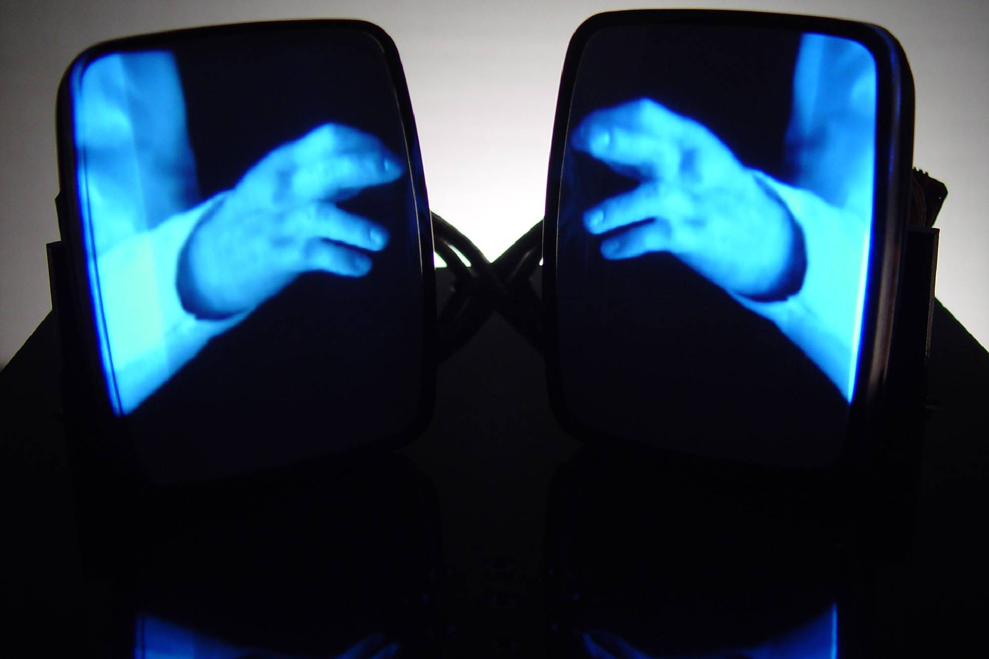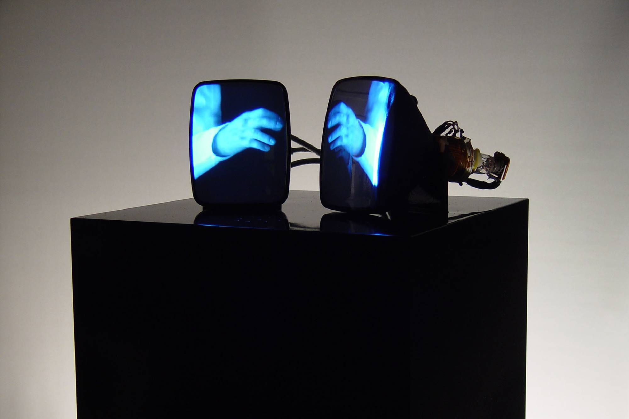 Acrylic case, CRT monitors, 2 channel video