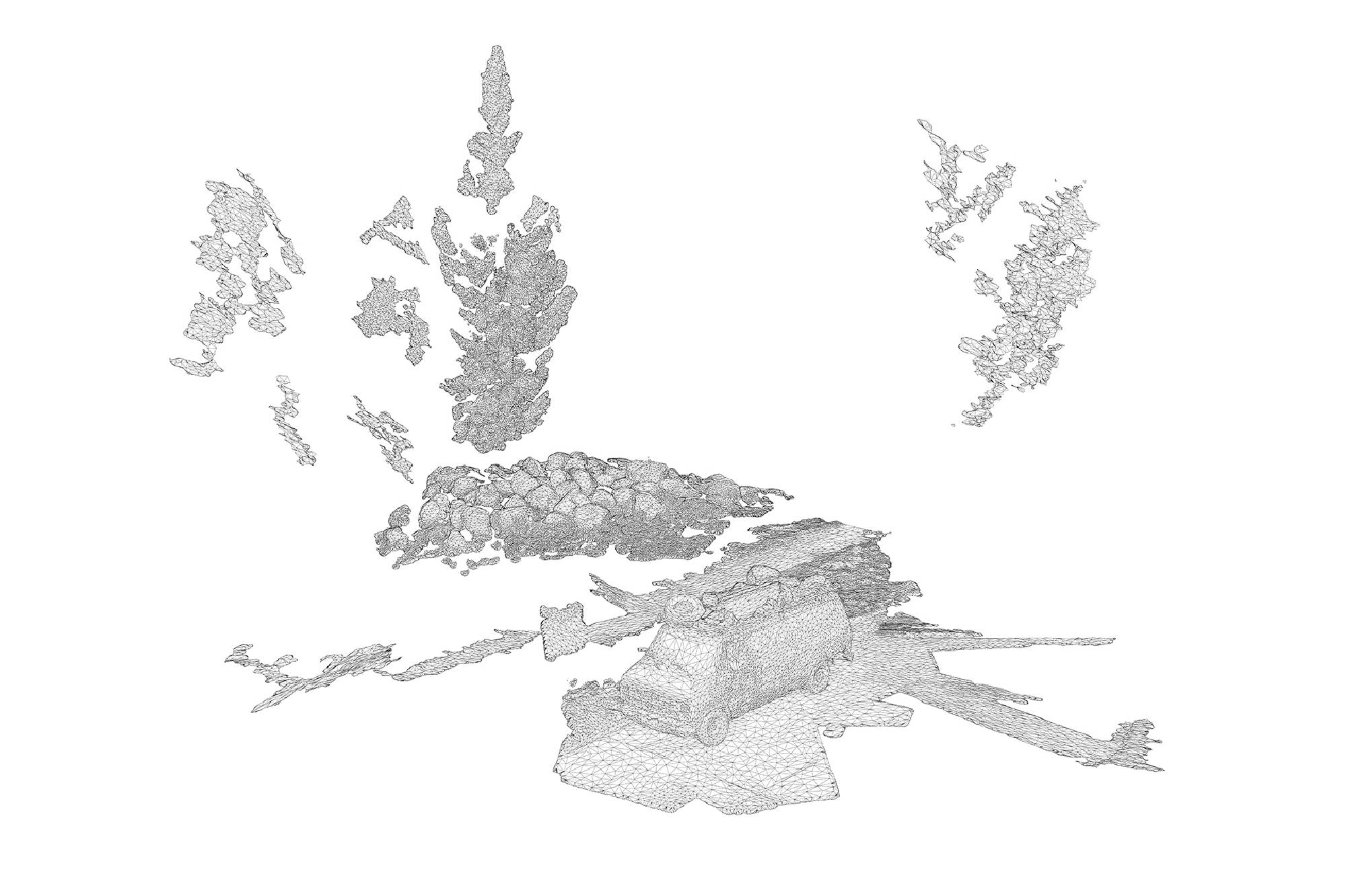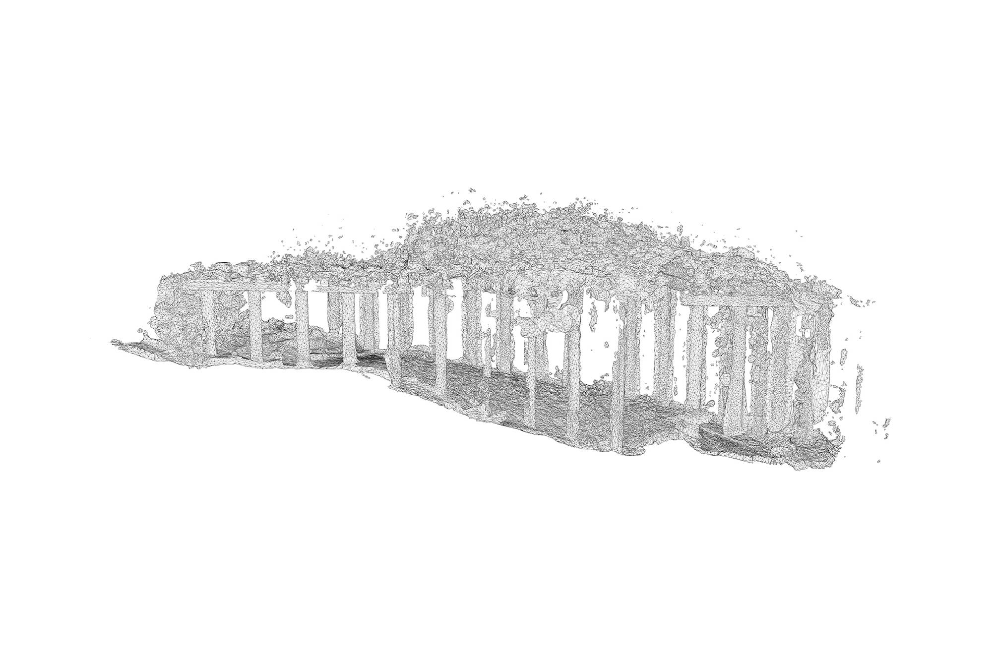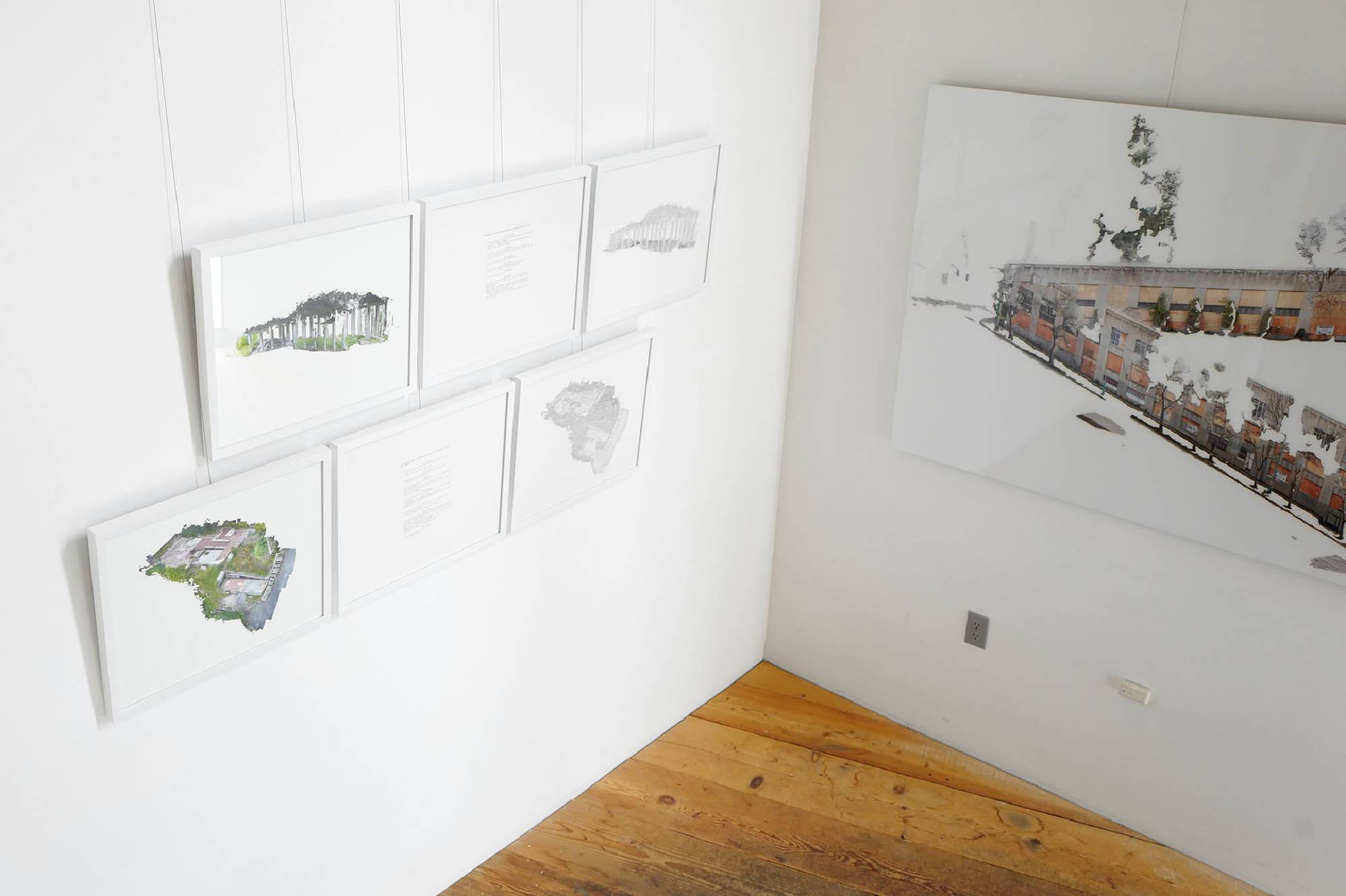 The models that result from photogrammetry can then be scaled, rotated, inverted, animated, textured, or rendered as a wireframe. This act of virtualizing a space, which often creates a glitchy, hollow, or flattened shell of the original site, seems similar to many of the large-scale image-making processes at work in the city: regrading, demolition, faux preservation, façadism.