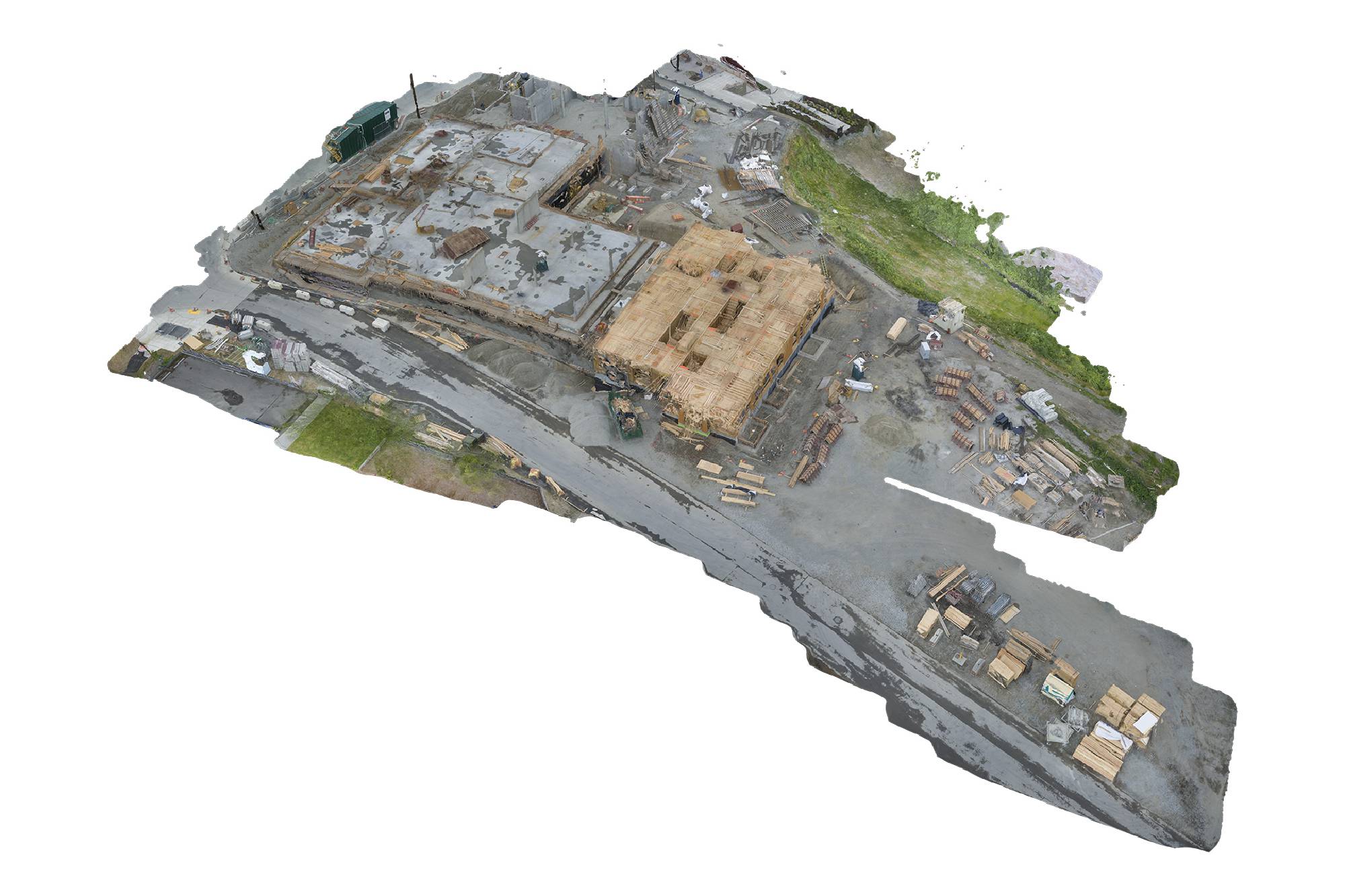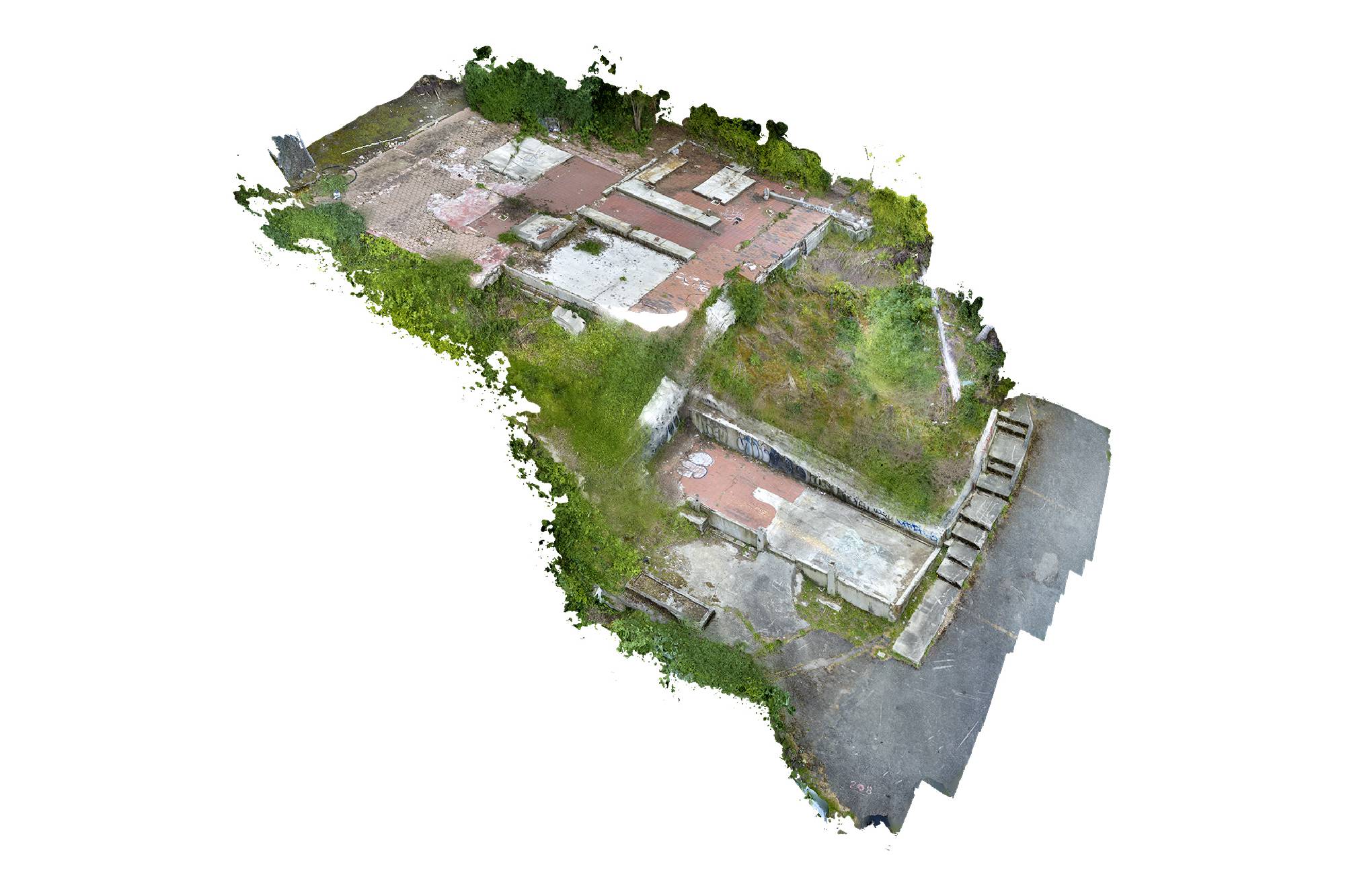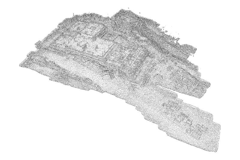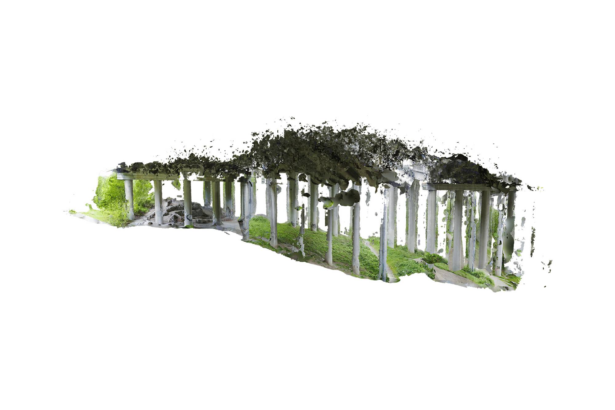 The models that result from photogrammetry can then be scaled, rotated, inverted, animated, textured, or rendered as a wireframe. This act of virtualizing a space, which often creates a glitchy, hollow, or flattened shell of the original site, seems similar to many of the large-scale image-making processes at work in the city: regrading, demolition, faux preservation, façadism.