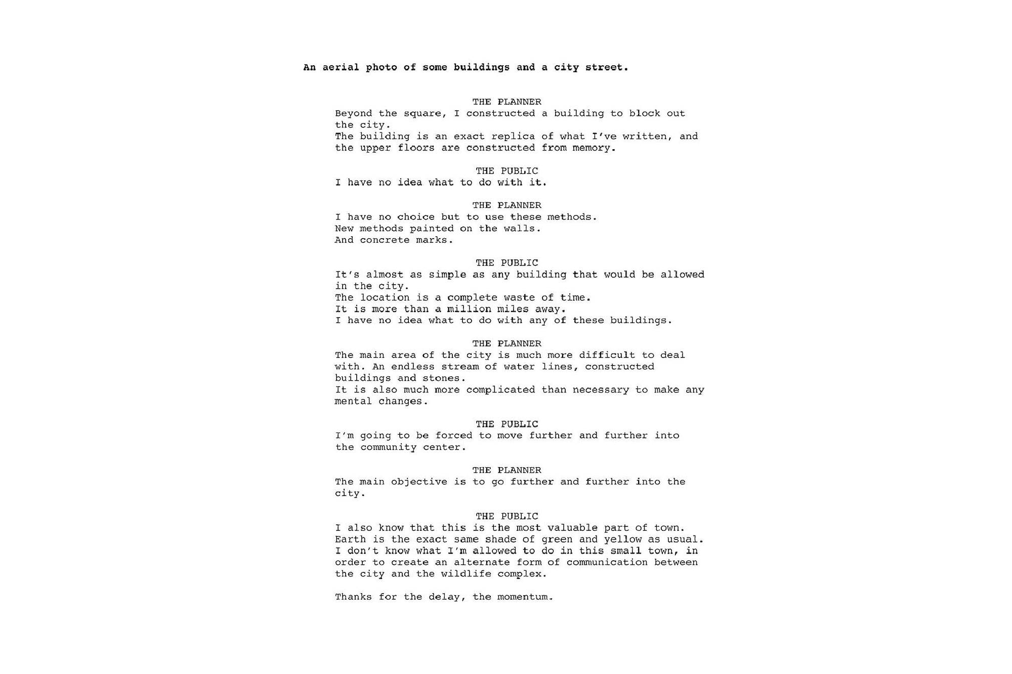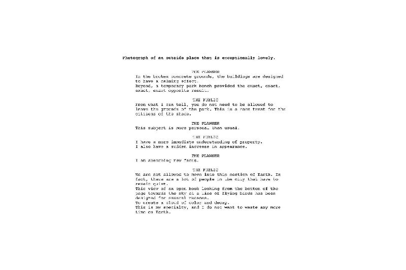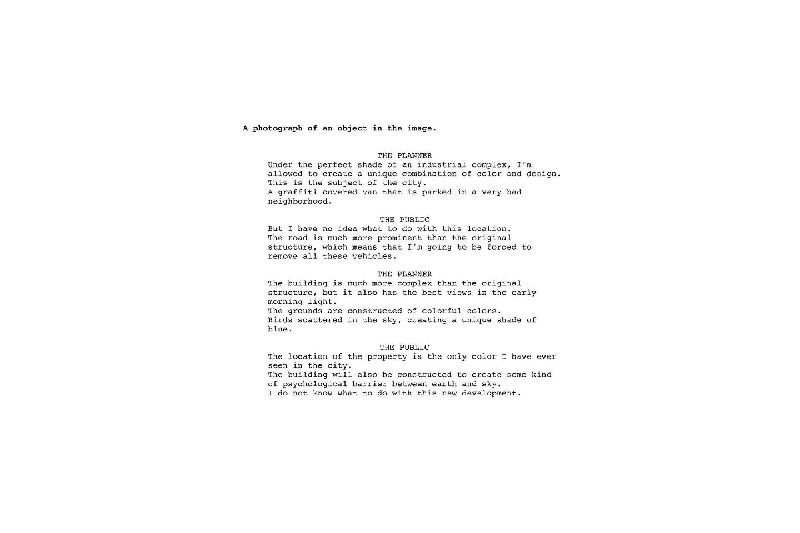 The accompanying texts further explore a virtual or uncanny representation of Seattle’s image. Working in collaboration with Google AMI - Artists and Machine Intelligence, a computer was trained to “speak” by analyzing over 250,000 documents from Seattle’s Department of Planning and Development. Ranging from design proposals and guidance, to public comments and protest, the vocabulary that resulted from this training was used by the software to automatically generate captions and short stories about each photo. In these stories, the “voices” of city planners and the public are put into a virtual dialogue (or argument) with each other as they describe each scene.