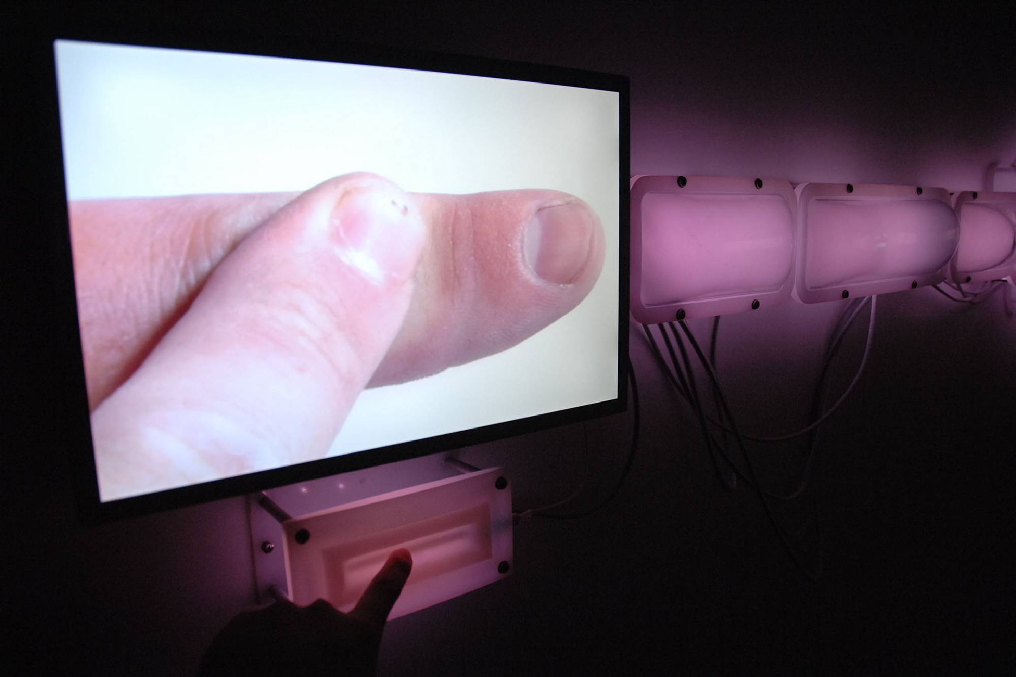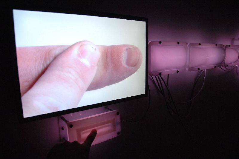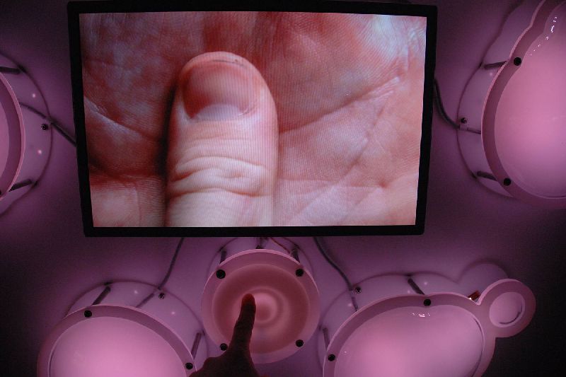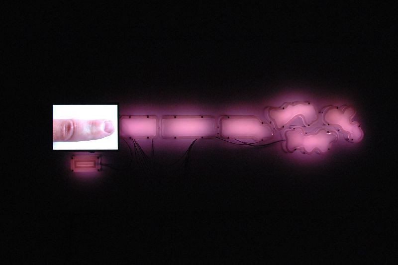 2009LCD monitor, custom electronics, acrylic, polyethylene, silicone rubber, LEDs