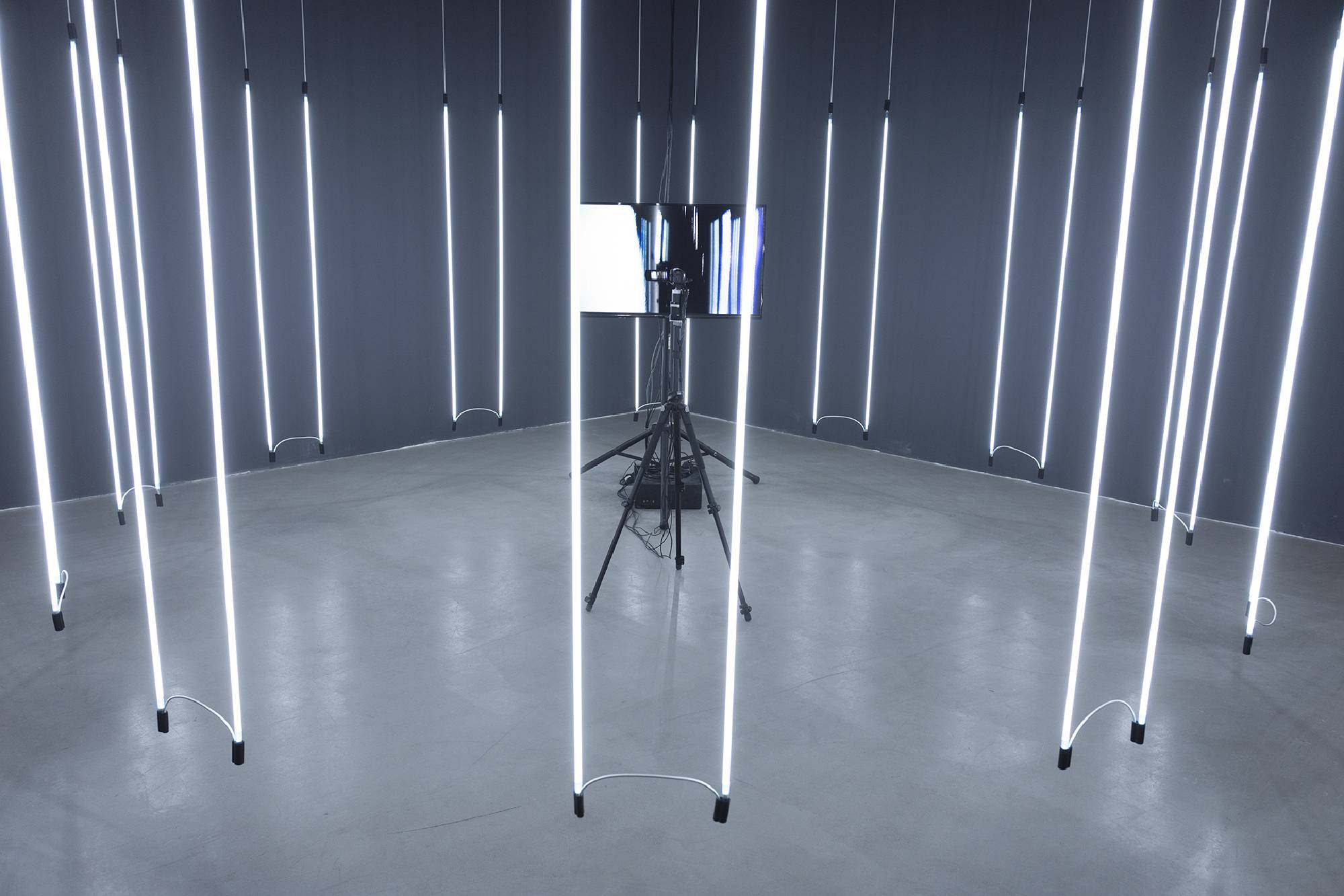In 2017, A Macrocosmic Zero was recommissioned for the opening of ECOOL, a newly developed cultural initiative in Chongqing, China. Just as the campus of ECOOL inhabits a large block of disused industrial factories, the video feedback mechanism in A Macrocosmic Zero similarly operates to reconfigure images of a space over time. Also see A Macrocosmic Zero (2010).