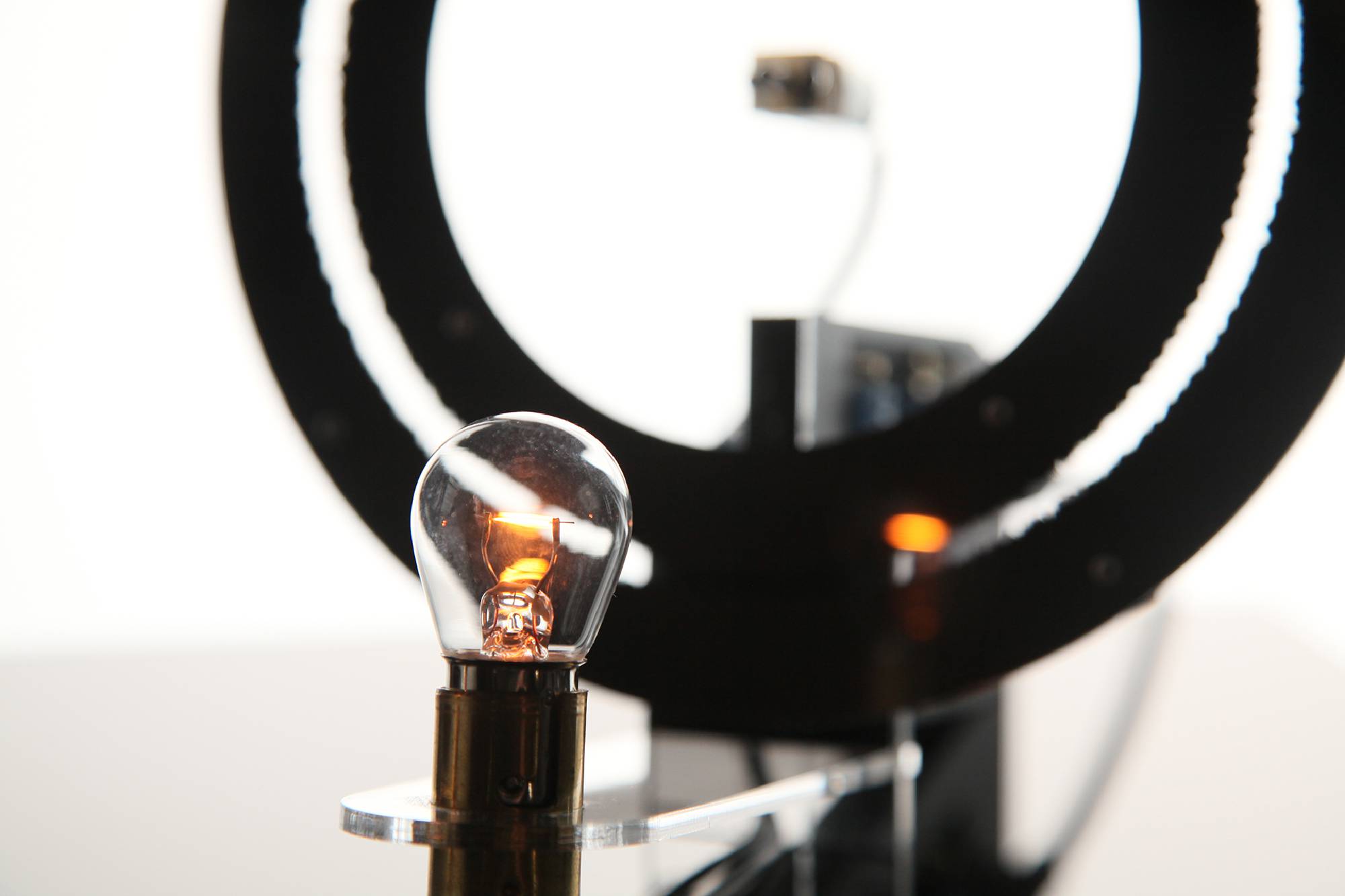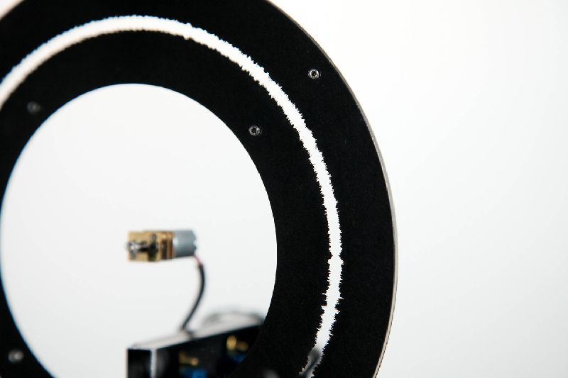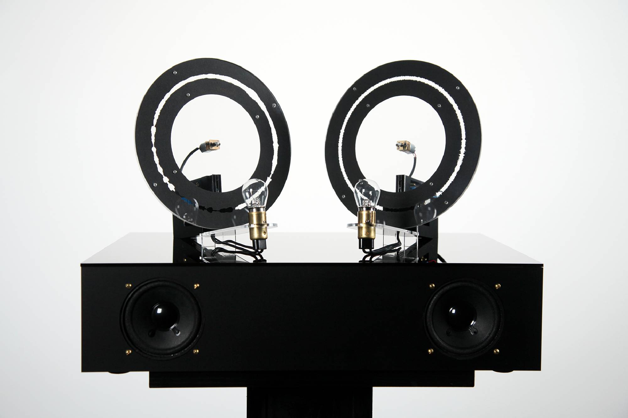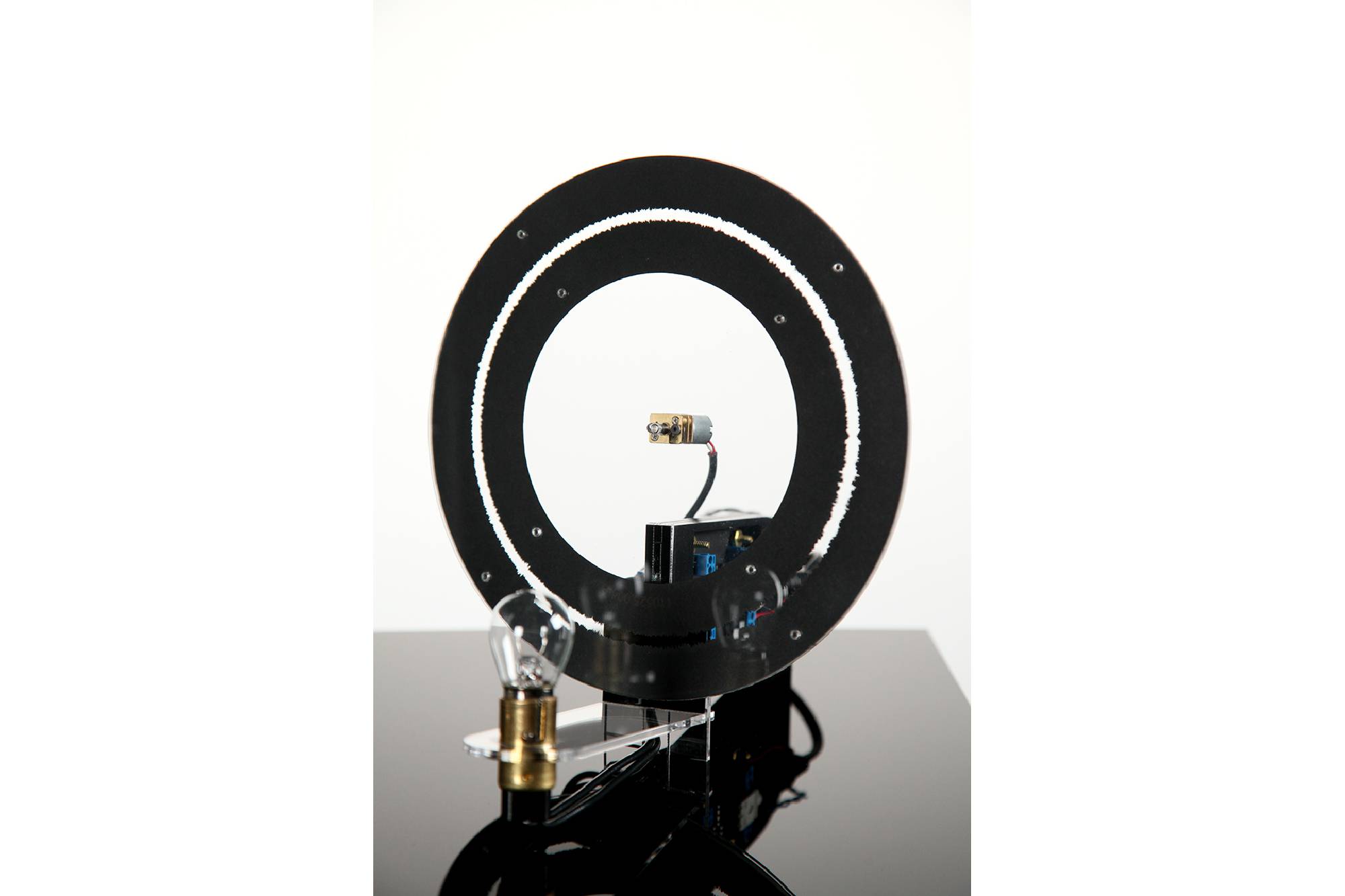 This series of kinetic sculptures creates audio as rotating waveforms modulate light emitted from a small bulb. While low in resolution, this visible process presents a tangible relationship between the recorded mark and the resulting sound. Drawing upon Rilke’s Primal Sound (1919), in which the fissures traversing a human skull are likened to the traces on a phonographic cylinder, this project experiments with the translation of a physical mark to an entirely different sphere of sensation (aural).