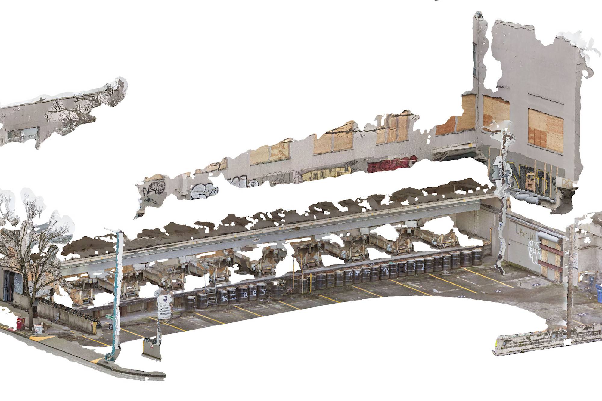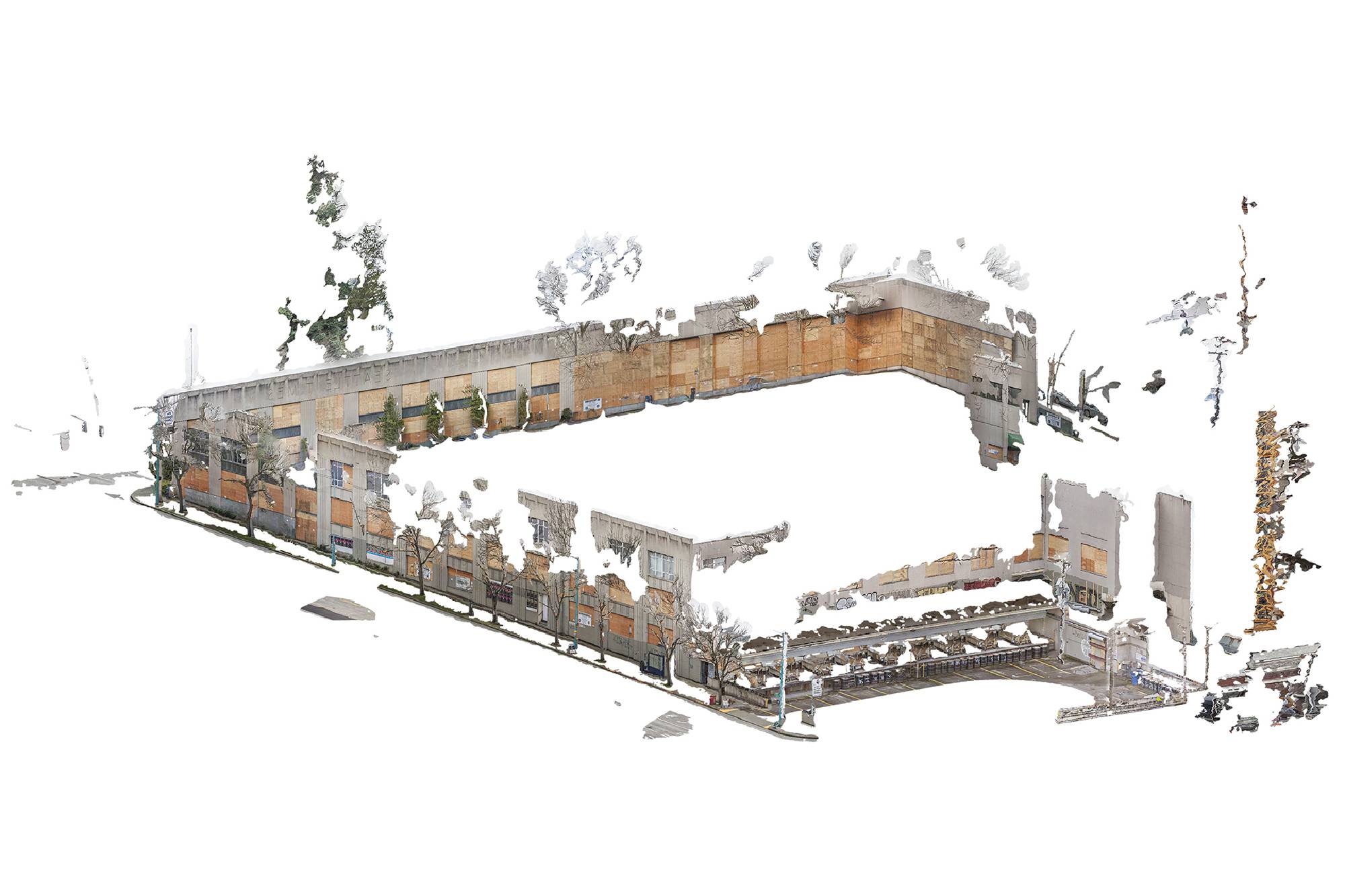 The former Seattle Times newspaper building typifies the radical reconfiguration of the city's South Lake Union neighborhood. Despite being a city historic landmark, the site has been left derelict by an international development group as it awaits the construction of mid-rise apartments above the original façade.