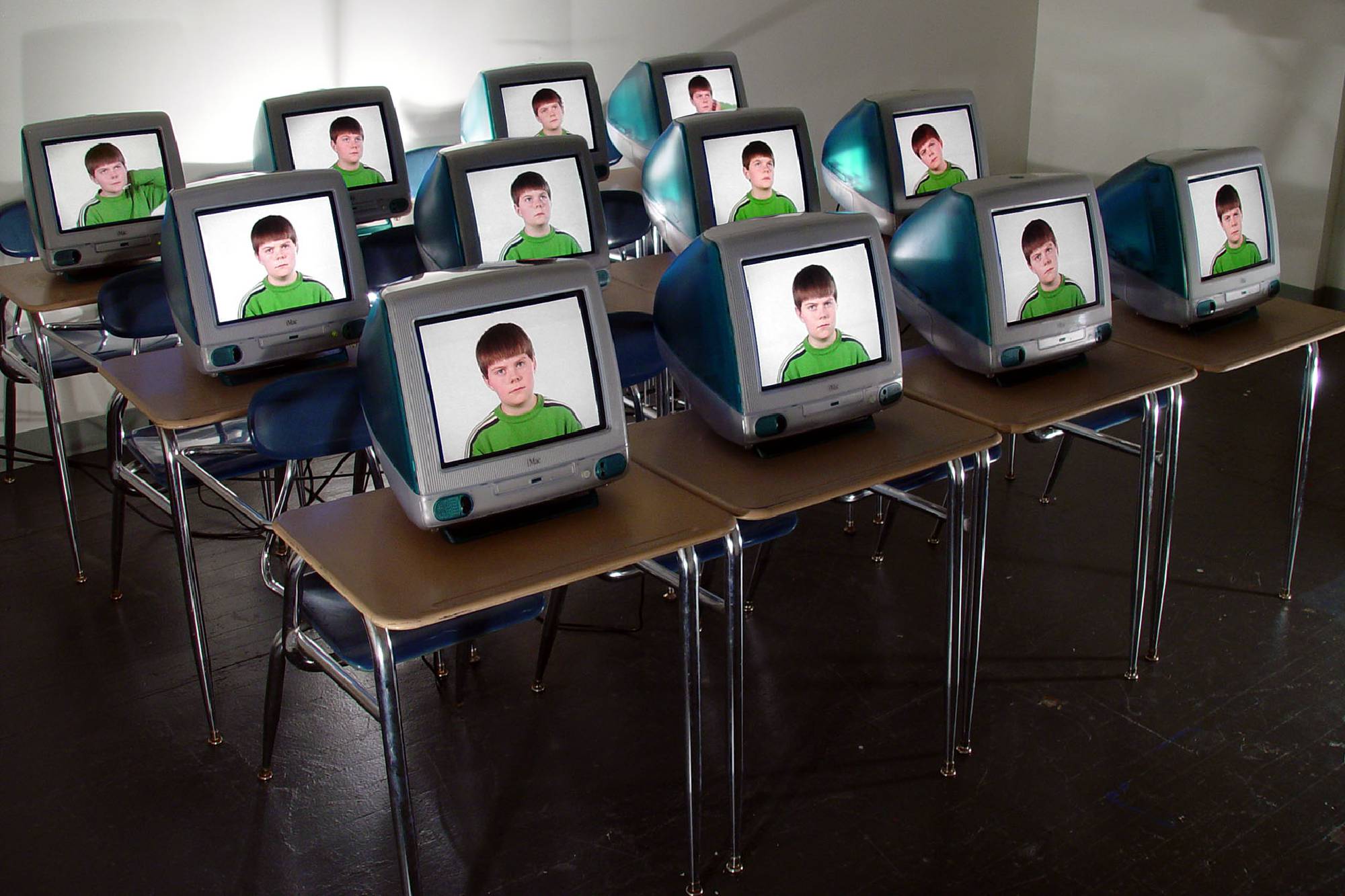 iMac computers, chair desks, 12 channel video